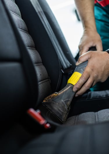 Vaciado de residuos, aspirado completo de cabina, limpieza de salpicaderos y perfumado de habitáculo